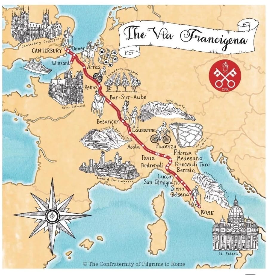 Du coup, l’idée naissait de faire un pèlerinage et la Via Francigena, qui va de Canterbury à Rome, s’imposait car elle commence en Angleterre où j’habite et passe par le canton de Vaud tout près d’où j’ai grandi et où habite ma maman et une grande partie de ma famille.