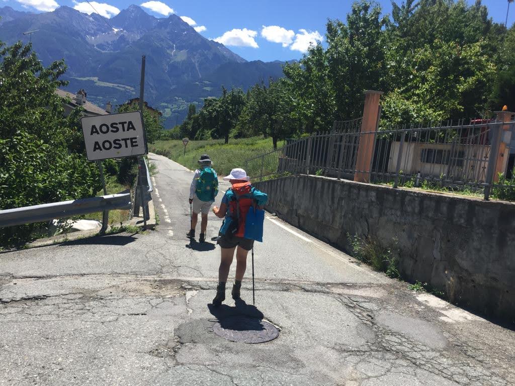 Nous arrivons à Aoste assoiffées et un peu déboussolées. Aoste est une belle ville pleine de charme et d’histoire, mais il y fait très chaud et les rues marchandes débordent de touristes. C’est un choc après ces journées entières en solitaire au frais dans les hautes montagnes.