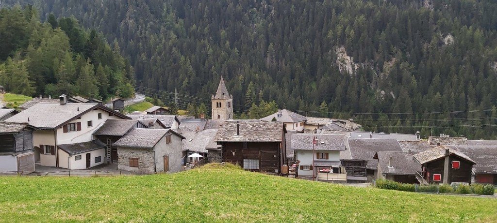 Nous arrivons à Bourg-St-Pierre en fin d’après-midi. Ce joli village a su conserver un aspect hors du temps, avec ses ruelles étroites et ses chalets en bois noirci par les ans.