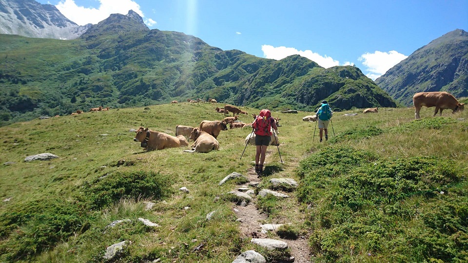 La pluie a cessé depuis longtemps et la marche est aisée. Mais ce n’est pas seulement parce que nous descendons la pente que tout semble plus facile, il y a aussi quelque chose dans l’air. Une légèreté, une sensation subtile de dolce vita qui à mon goût distingue ce côté sud des Alpes de son versant nord. On sent notre corps se détendre, se réchauffer au soleil qui est revenu.