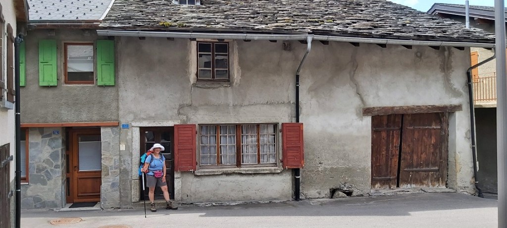 A cause de la Covid, il n’y a effectivement aucun logement disponible à Sembrancher. De même, l’endroit habituellement mis à disposition pour les pèlerins à Orsières est fermé. Heureusement, l’Hôtel Terminus tout près de la gare est ouvert et nous y avons réservé deux nuits en dortoir. Nous sommes bien contentes de pourvoir y descendre et notre dortoir s’avère plutôt confortable. En plus nous y sommes seules car la pandémie n’autorise pas les hôteliers à mettre plusieurs groupes dans le même espace.