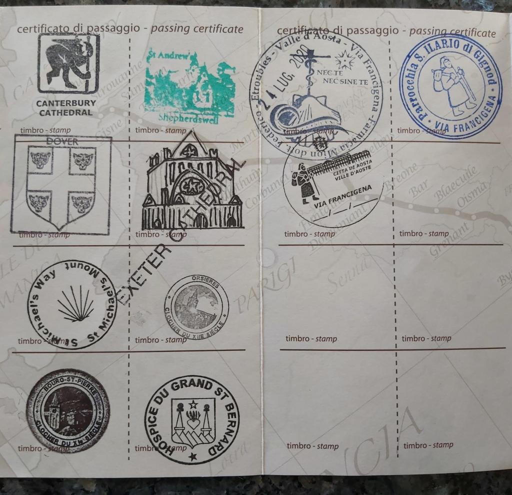 Malgré cette quasi cohabitation d’un quart de siècle avec la Via Francigena, il aura fallu un autre quart de siècle pour que j’en entende parler, et encore beaucoup d’années avant que l’envie me prenne de la parcourir à pied. Ce n’est donc qu’à fin 2019 que je me suis lancée sur la Via Francigena. La pandémie de la Covid 19 a coupé mon élan, m’a contrainte à m’inventer une VF “hors piste” (voir les articles précédents de ce blog), mais en été 2020 j’ai profité d’une accalmie de ce vilain virus pour parcourir les étapes alpines de la VF, celles-ci n’étant accessibles aux pèlerins que pendant les mois sans neige.