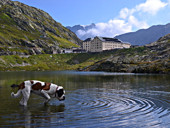 Et bientôt nous distinguons l’hospice du Grand-St-Bernard tout en haut d’une pente rocailleuse. Allez, encore un petit effort.